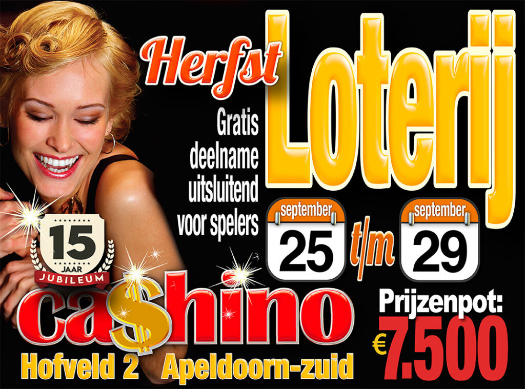 Tijdens de Loterijdagen, verloot Cashino Apeldoorn maar liefst €7.500! Deelname alleen voor spelende bezoekers.